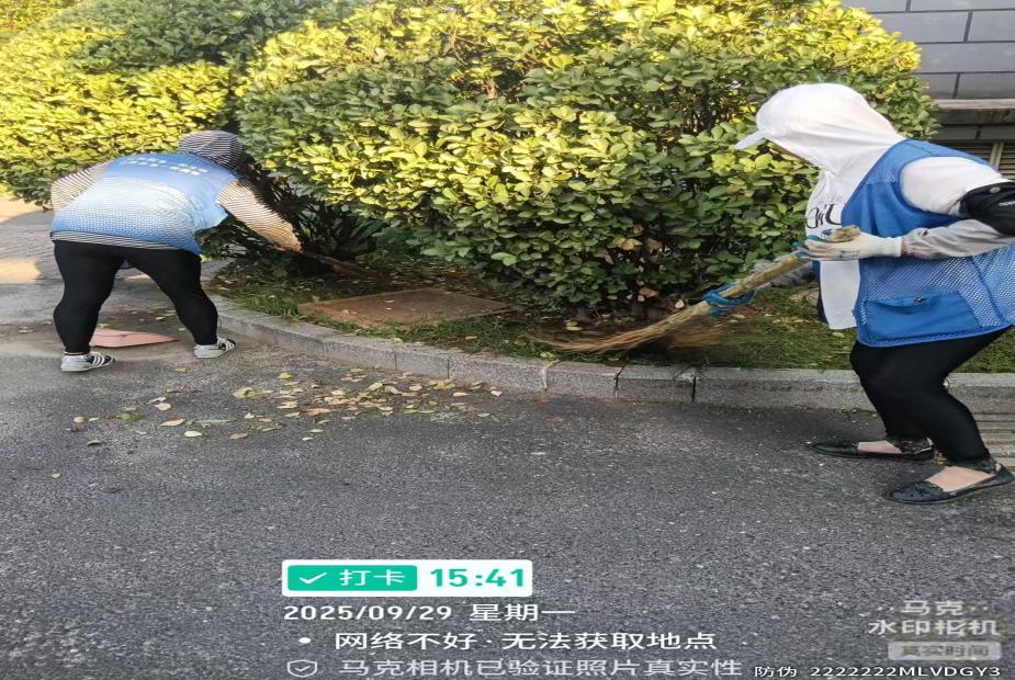他们用脚步丈量着物业小区,身后为我们留下了一条条干净宽敞、整洁的道路。